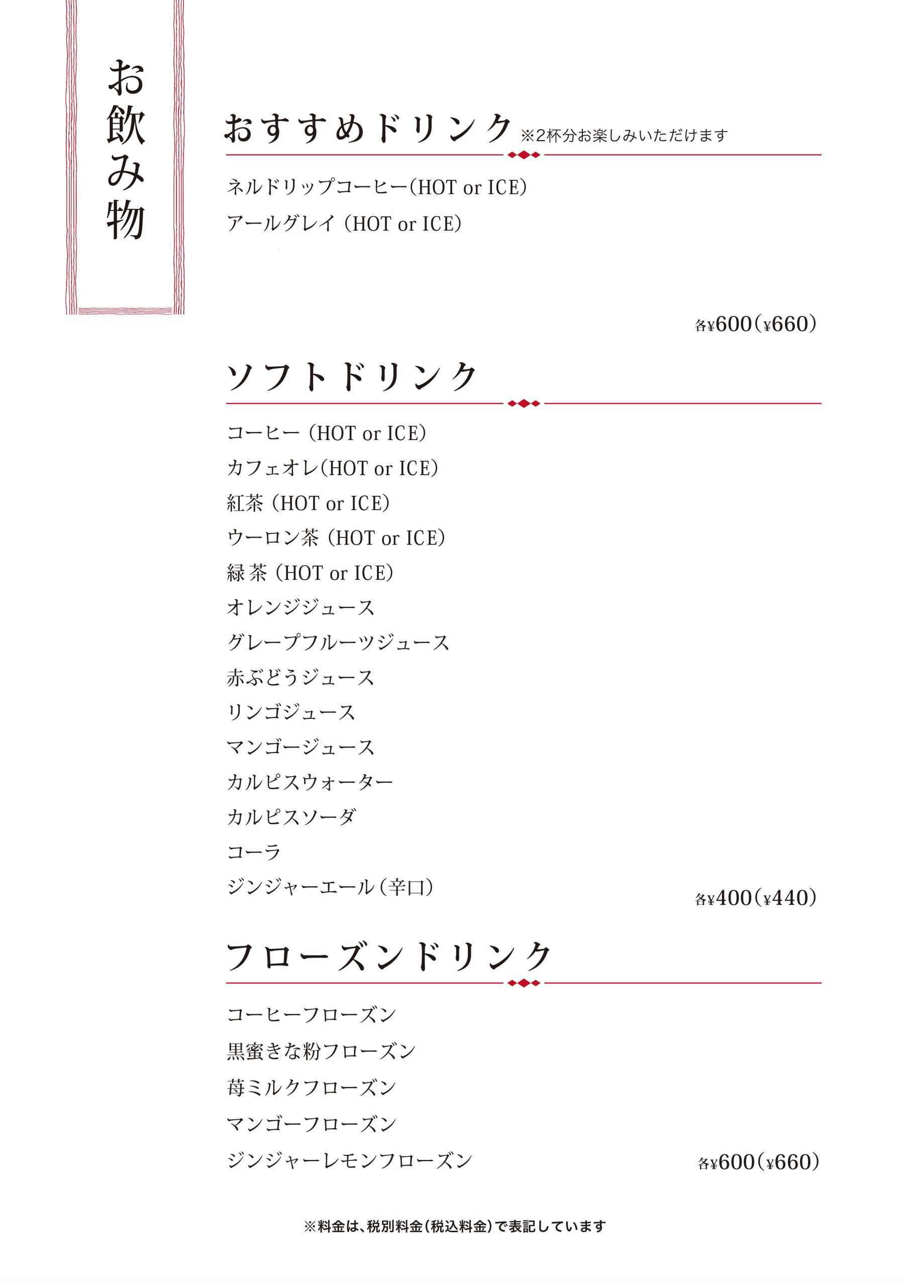 ▼ 横にスライドしていくとメニューをご覧いただけます。