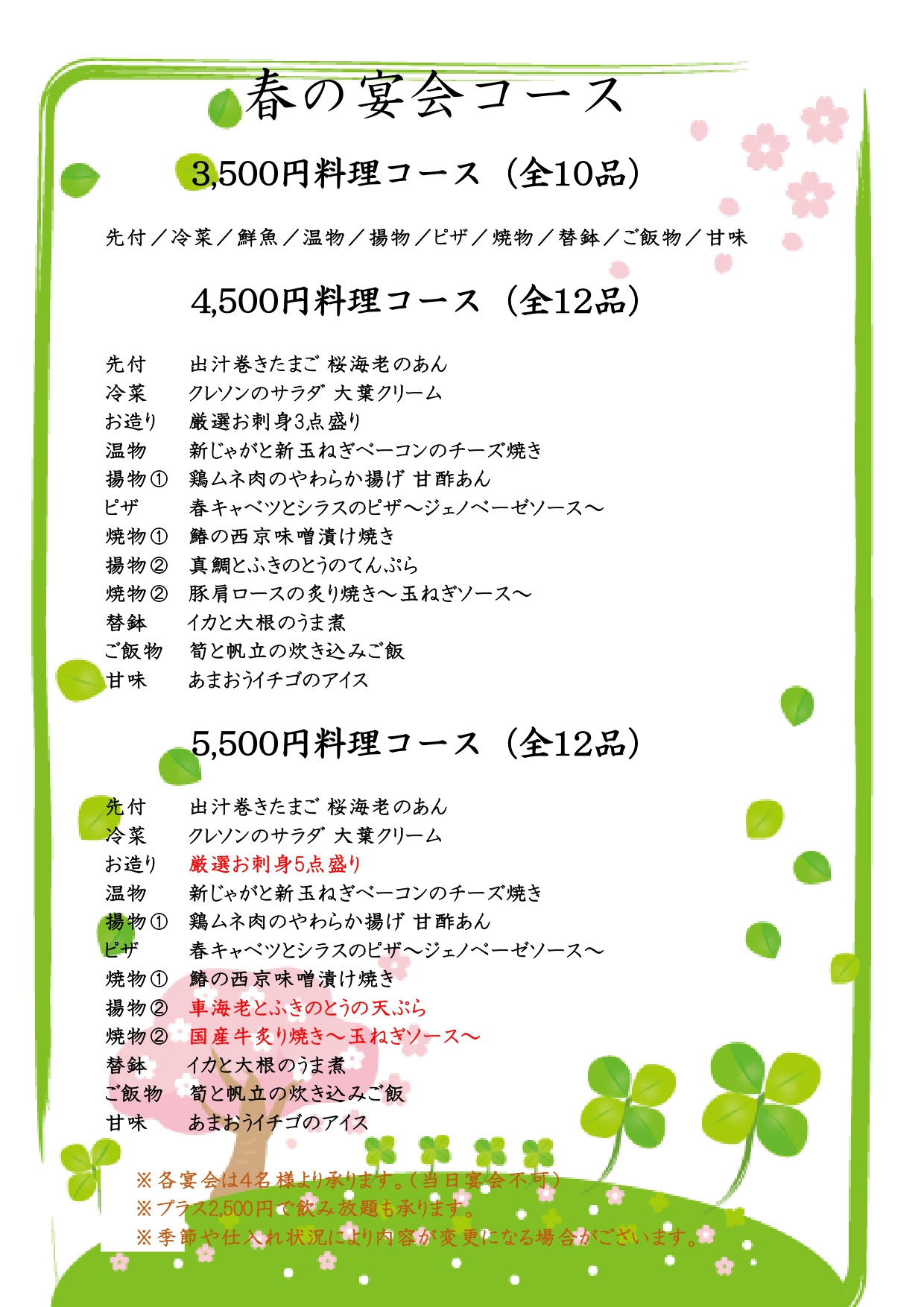 | 飲み放題 | 飲み放題メニューあり |